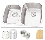 Undermount Kitchen Sink. 16 Gauge Stainless Steel. 40/60 Double Bowl. Sink comes with Matching Protective Grid, Deluxe Basket Strainer, Eco-Friendly Bamboo Cutting-board for FREE! Dimensions 31-3/4" x 20-1/2" x 7-1/8" | 9".